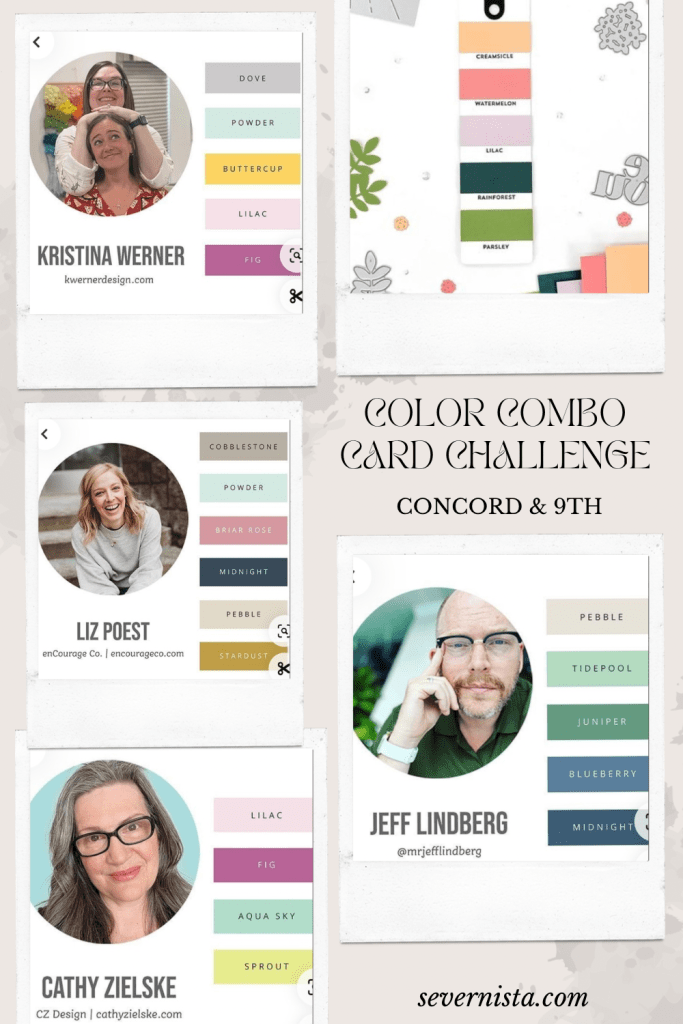 This is my third attempt at using a selection of Concord & 9th color combo’s by various crafters working in conjunction with C9. When I see these types of pins on Pinterest it motivates me to use them as a guide in my cardmaking. Do they work for me? Does it push me out of a routine of producing a certain style card? Is it too restrictive? How do I make the colors work? Usually it leads to somewhere else. Here is my original selection of colors to try in upcoming cards: