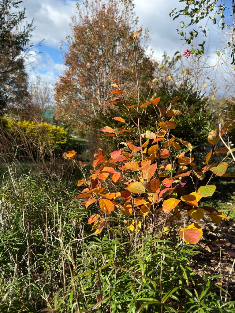 And so Fothergilla does its late season trick and bursts out amazing color! Then in the spirit of its witch-hazel relatives comes back in the early spring with its quirky little bottle brush shaped flowers, scented like honey, a delight for the pollinators and the bees. It’s a native insect food source and gets a gold star for being a habitat hopeful.