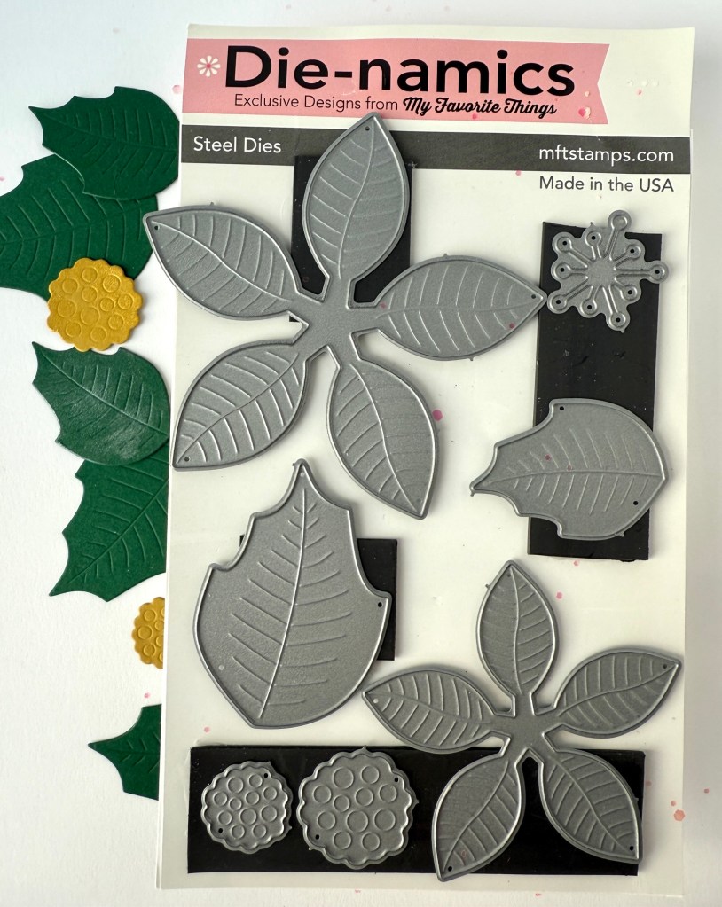 Working more with the Die-namics Poinsettia die set from My Favorite Things, I came up with several different color/ paper variations of this lovely holiday flower.