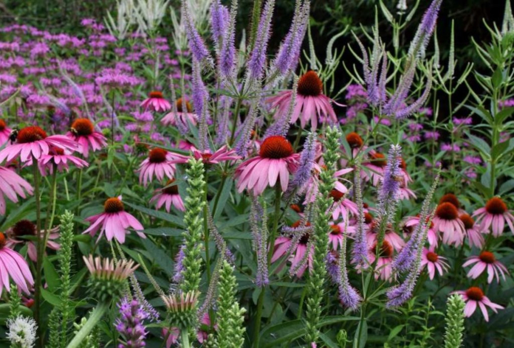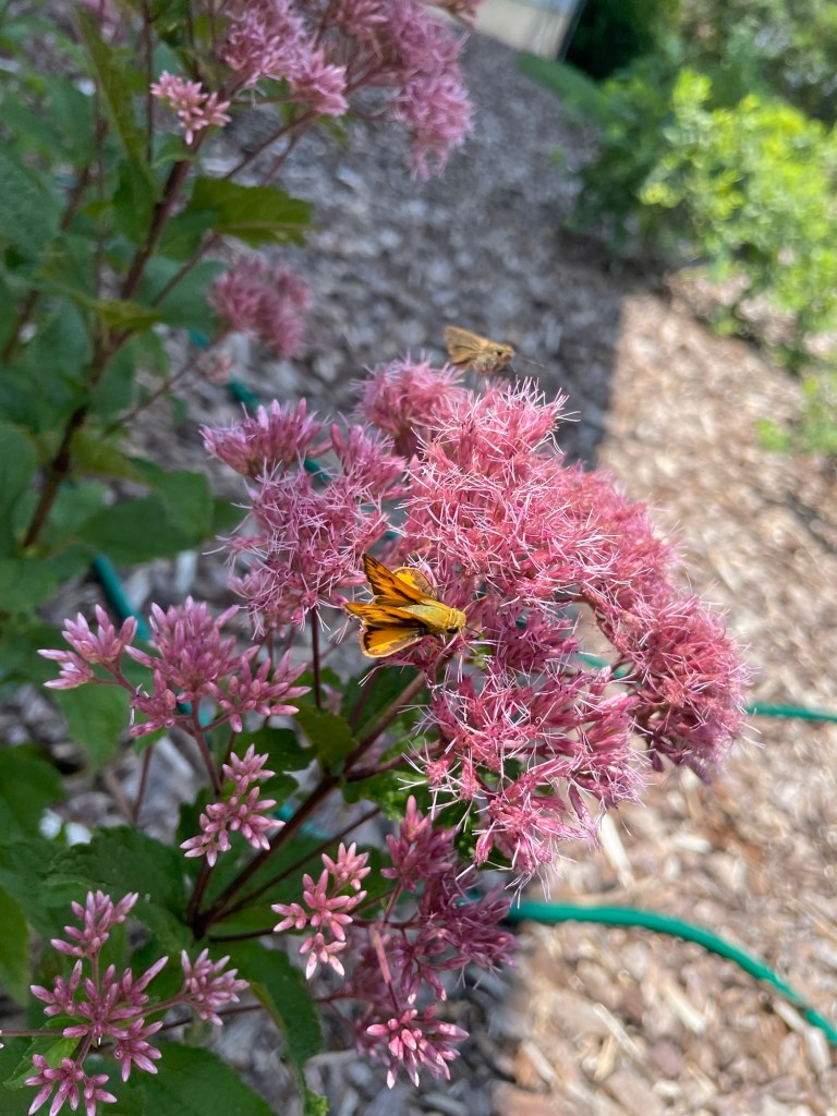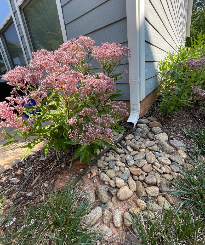 This is a more compact version of the straight species of Joe-Pye Weed. Its true parentage is unknown and it has been patented. It tolerates seasonally wet and dry locations and I’ve had them growing by another downspout in my yard with success. Their mauve flowers are pollinator magnets and their small form (3-4 feet high) make them more suitable for a small yard. Their smaller growth also keeps them from flopping over. They often come up late from the ground in spring so don’t be dismayed if they haven’t arrived when everything else has.