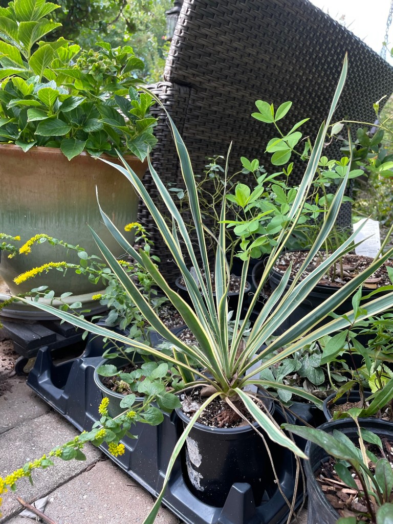 I chose it because its foliage will hold through the winter, it’s drought tolerant, clay tolerant and doesn’t grow too big. In fact it will be wider (up to 36″) than taller (up to 18″). They can be hidden in summer by other foliage but come winter they will get to be the showstopper. In spring the bright, yellow edges of their floppy, dagger fronds, will look beautifully alongside the blooming Baptisia.