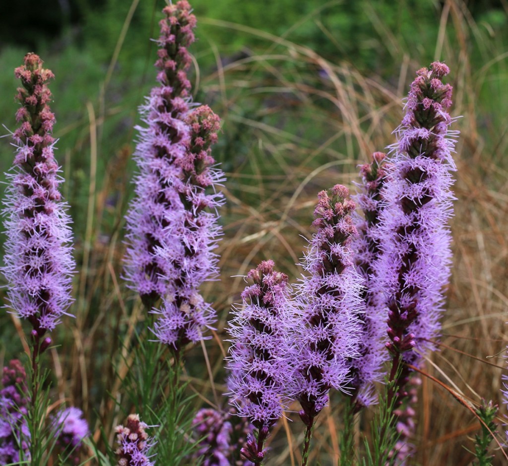 I have planted three varieties and so far two are coming up this spring but I’m only sure of one, Liatris microcephala, aka smallhead blazing star, and this is because I just transplanted it from somewhere else in my yard. It will bloom mid-summer, tolerates dry soil and should remain smaller at under 2 feet for a Liatris.