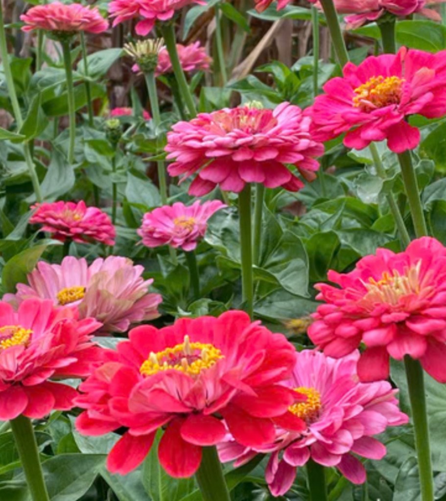 Just a fun, easy to grow, sun loving, pollinator and bird magnet, flowering plant. They bloom until frost and there are so many varieties and colors available. It can reseed itself so don’t be surprised if you find them growing in other parts of your yard next year. This year I am trying out Raspberry Sorbet (Zinnia elegans) which are raspberry colored, double blossoms on tall 3-4 feet stalks. They will add a nice jewel tone analogous to the jewel tones of the purple hyacinth bean vine and the Amistad Salvia.