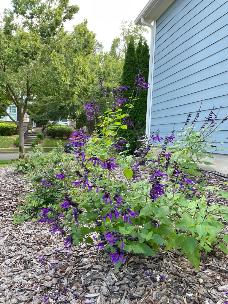 A perennial salvia that is winter hardy in our Zone 8. Not a native plant to our area, but a profuse, long blooming, shrubby grower of up to five feet tall, ‘Amistad’ salvia, also known as friendship salvia, is a relatively new hybrid. With “large, rich royal purple flowers adorned with nearly black calyces,” according to Gardenia.net, it is a very versatile plant in the garden if you have the space. It begins blooming is early summer and continues until the first frosts. It won an Award of Garden Merit from the Royal Horticultural Society (RHS).