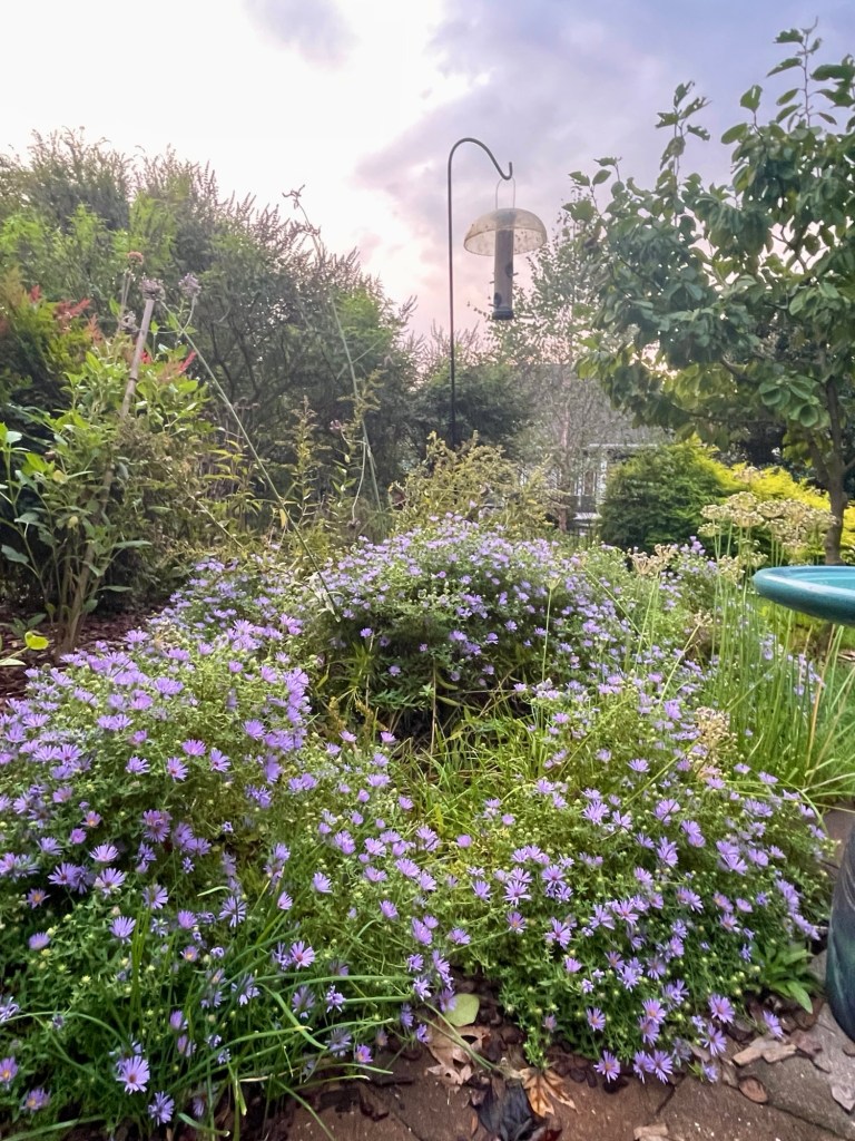 Members of the genus Symphyotrichum support a variety of specialized bees. This is a profuse bloomer as I have found also with Symphyotrichum oblongifolium ‘Raydon’s Favorite’ another compact version of the species growing 2-3 feet high and wide. They truly are beautiful late bloomers, coming on with such fresh, outstanding color when all else is tired and weary. Though their foliage ain’t much to look at, you gotta have asters! They also pair well with Rudbeckia and native grasses like Muhlenbergia capillaris, pink muhly grass.