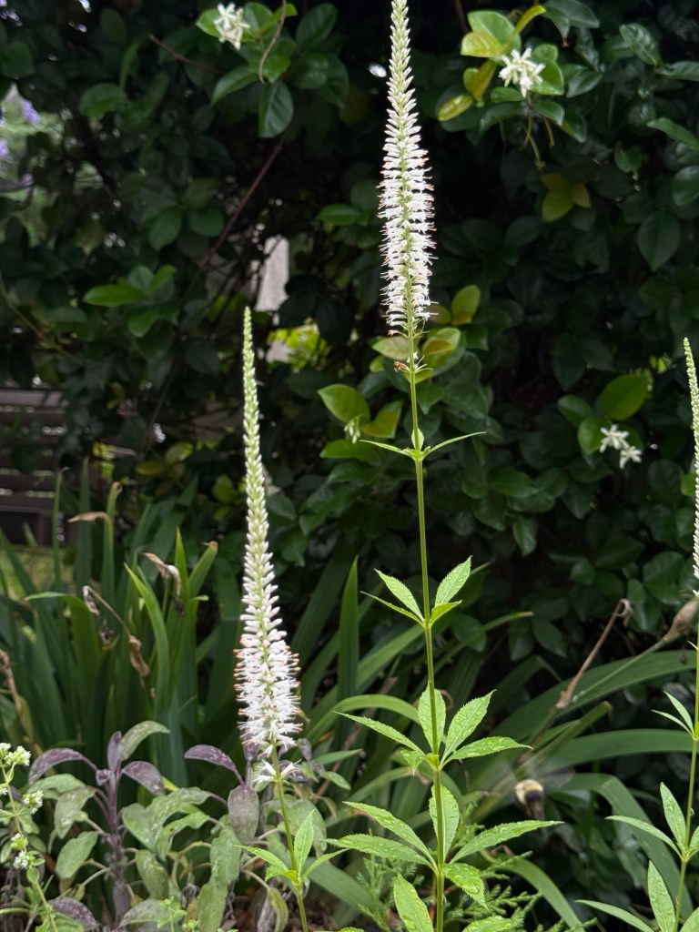 Culver’s Root is striking when it’s in full bloom. It can handle occasionally wet soil and also dry spells. I’ve had mine potted this summer as I decide where I’m going to plant it. i can plant it part sun in C2, the mostly native bed. Will it flop? Will it flower much with reduced sun?