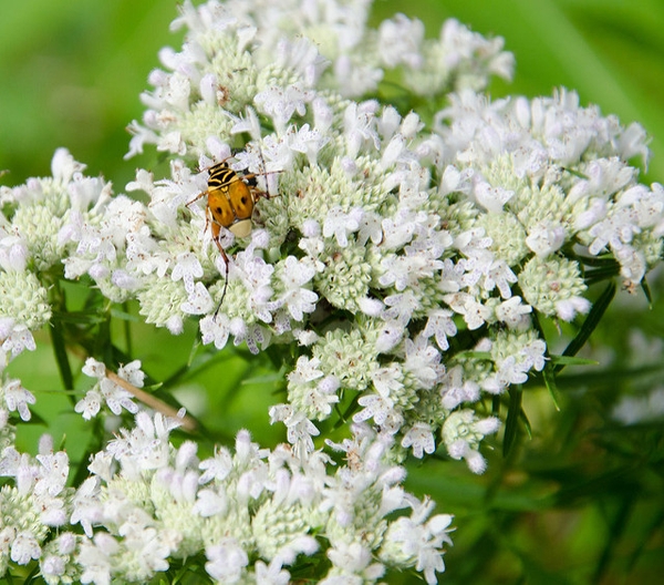 It grows in a variety of soils, in part shade and full sun. Its small, but profuse, white flowers attract many kinds of pollinators from June through late August. Unlike other varieties of mint, narrow leaf mountain mint does not spread aggressively. It fits in the perennial border from fore ground to background growing 18- 30 inches in height and 24-36 inches wide with maturity. It is also to note that these are deer and rabbit resistant.